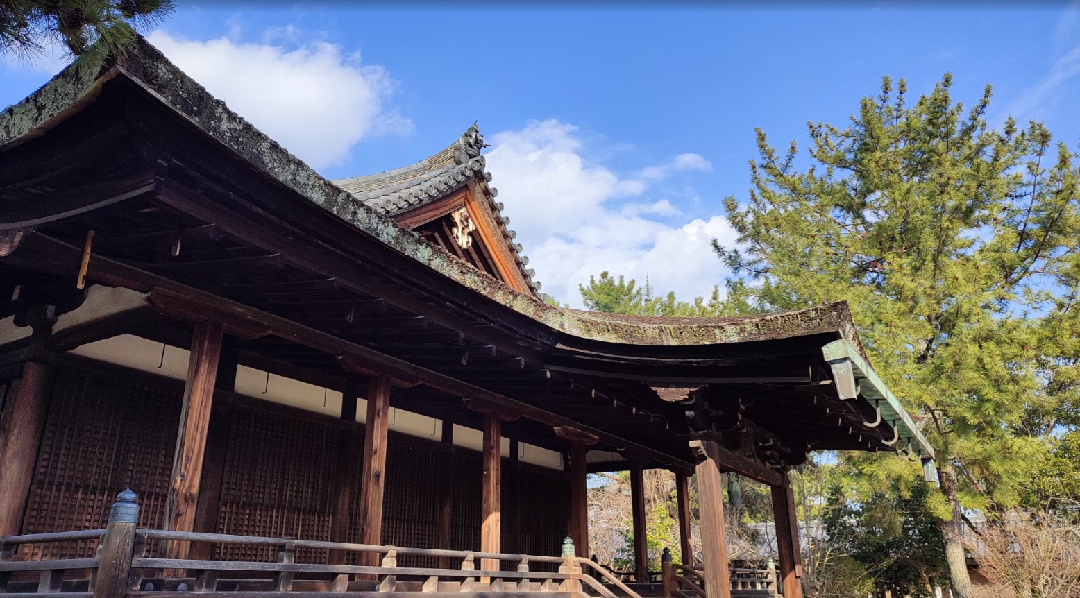漫步寺內,低矮的回廊、檜木建築與老松相互映襯,色調樸素卻層次分明,讓人不自覺放慢步伐。