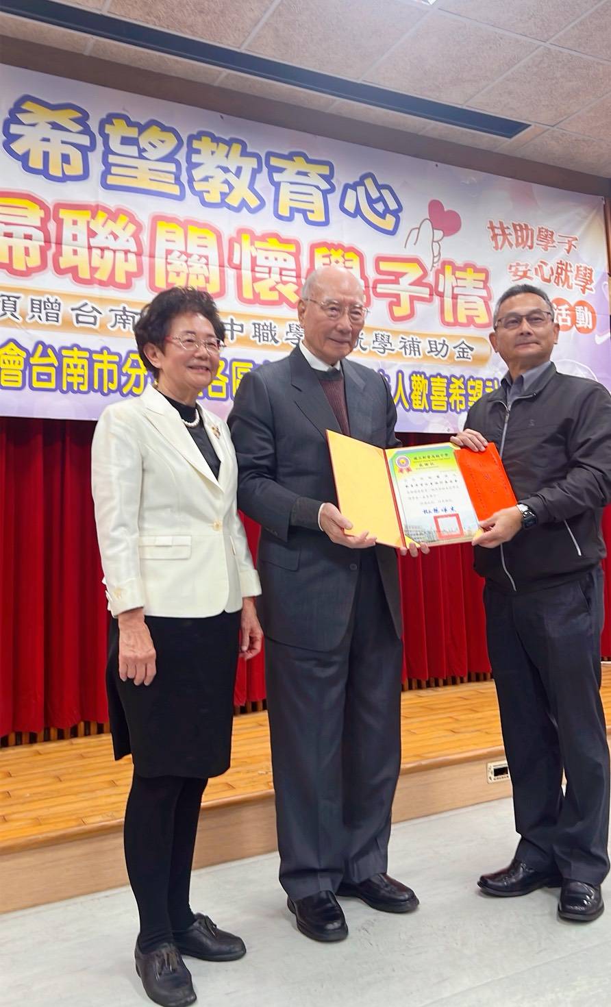 婦聯會臺南市分會主委沈美珠致詞時說,中華民國婦女聯合會即使近幾年來,遭受無情無義的打壓,仍堅守照顧弱勢的初衷,持續關懷清寒學生受教育的機會,本學年合計補助399人,其中臺南市獲得補助39人;她指出,婦聯會從八十九學年度第二學期開始集結婦聯姊妹愛心辦理頒贈助學金,鼓勵清寒家庭子女努力向學,以順利完成高中職學業,這項就學補助採公平、公正、公開原則,幫助真正需要幫助的學生,由婦聯分支會姐妹或學校推薦,經支會初審、分會複審後,送交總會董事會議核定後頒贈。