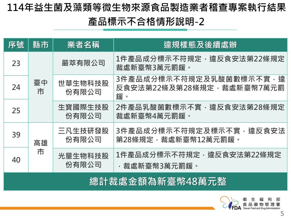 ▲ 益生菌「250億」變「69億」!知名品牌被抓包標示不實 逾期原料、菌數灌水多家挨罰。(圖/食藥署 提供)