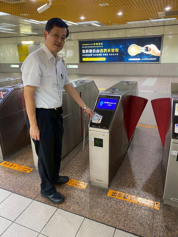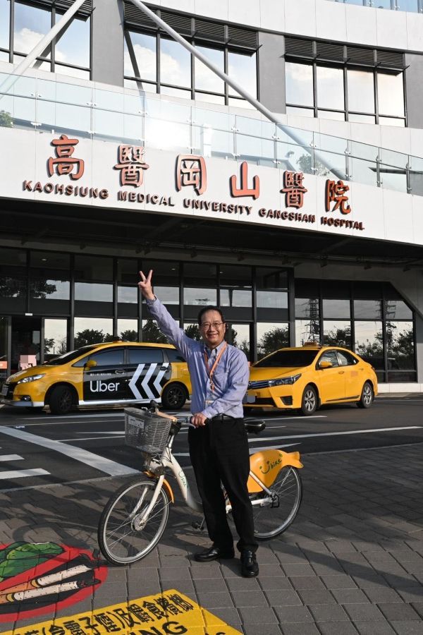 3.高醫岡山醫院為捷運共構院區,院區與捷運系統緊密連結,圖為黃志仁副院長親自示範低碳通勤的智慧實踐,將日常上班化為永續行動。