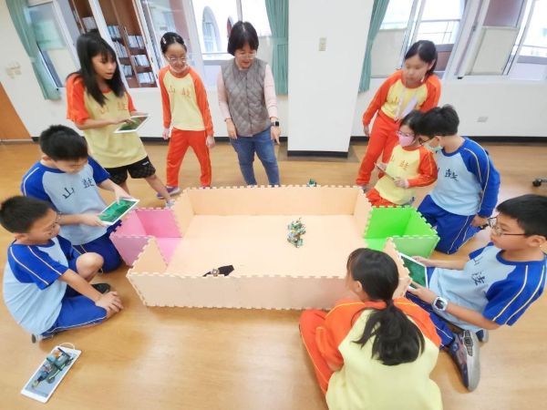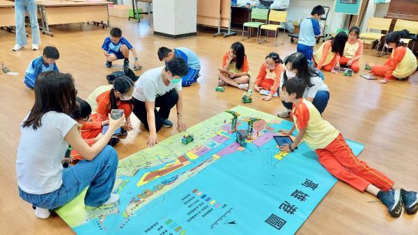 在講師活潑引導下,學生化身小小工程師,透過編排程式模塊,控制自己的機器人夥伴在高雄港地圖上移動,以模擬物流的方式了解高雄港的貨物運送模式及港區區劃。課程尾聲則以「機器人足球賽」激發學童團隊精神,課程中充滿在歡笑。