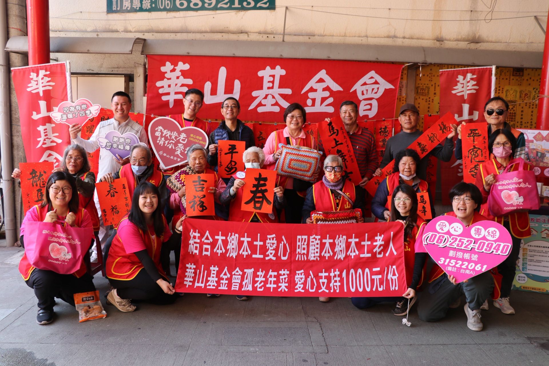 本次春聯義賣所得將全數用於華山基金會「愛老人 愛團圓」公益計畫,協助準備春節愛心年菜,讓弱勢獨居長輩在除夕夜也能享用一桌有菜、有溫度的團圓餐。華山基金會台南A區縣站長黃中衛表示:「許多獨居長輩在除夕夜因行動不便或經濟困難,只能簡單度過年節,期盼透過社會大眾的支持,以實際行動響應春節愛心年菜募集,讓一份善心,成為長輩除夕夜最溫暖的陪伴。」