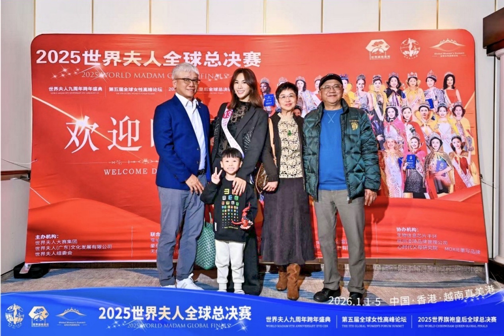 ▲巫鳳儀台灣夫人參賽全家人受邀一起參加歡迎晚宴。(圖/范玉玲雅商學院-英國皇室形體儀態體系提供)