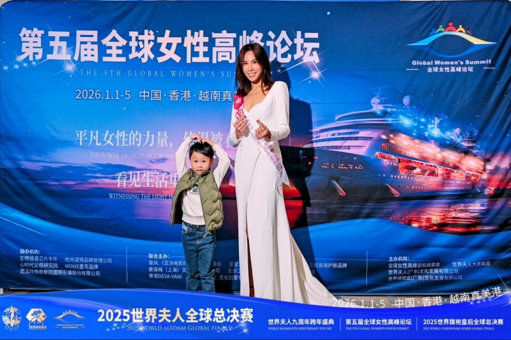 ▲巫鳳儀-代表范玉玲雅商學院-范院長出席全球女性高峰論壇並帶領兒子一起參與。(圖/范玉玲雅商學院-英國皇室形體儀態體系提供)