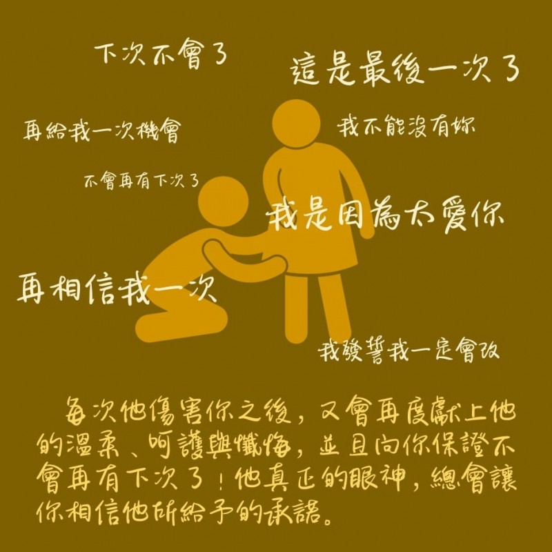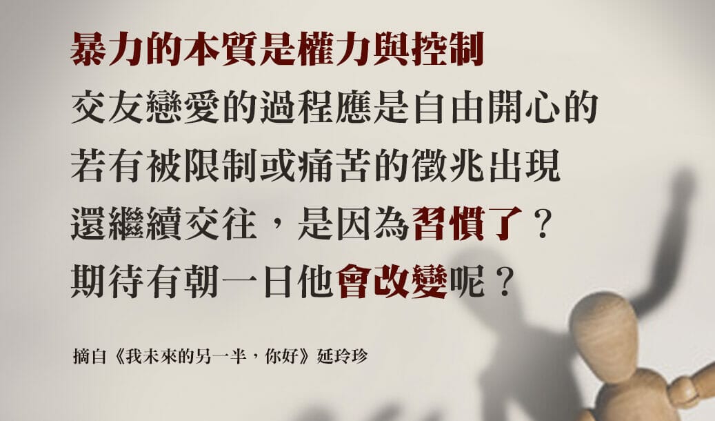 「他說,都是因為我讓他沒有安全感……我開始覺得,是不是我真的做錯了?」小倩的眼淚決堤,「我不敢告訴朋友,怕他們覺得我笨;也不敢完全聽媽媽的話離開他,因為……因為他道歉的樣子好可憐,而且,他以前真的對我很好很好。」