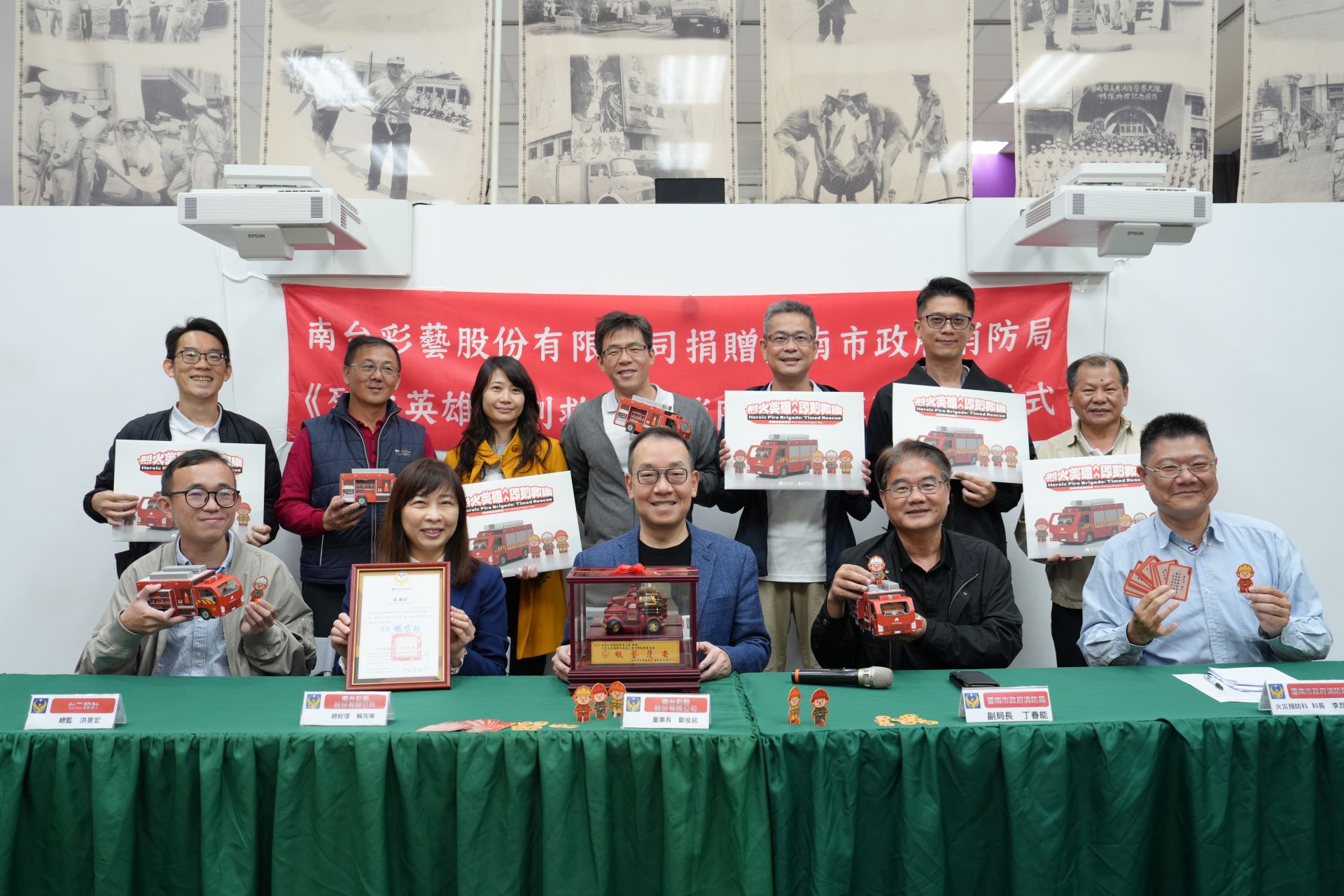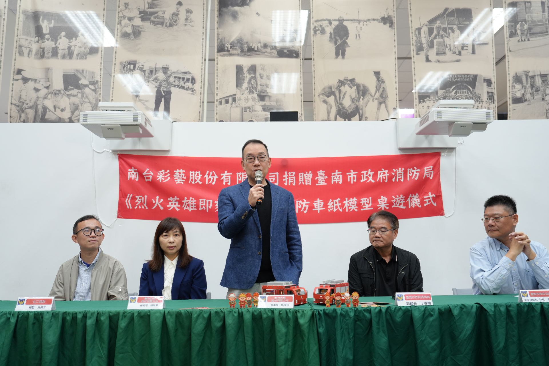 為強化消防安全教育、提升孩童與家庭防災意識,南台彩藝股份有限公司捐贈3000份《烈火英雄即刻救援》消防車紙模型桌遊致贈給臺南市政府消防局,提供作為防災宣導與教育推廣使用。捐贈儀式於消防局防災教育館舉行,由消防局副局長丁春能代表受贈,並致贈感謝狀,感謝企業善盡社會責任。