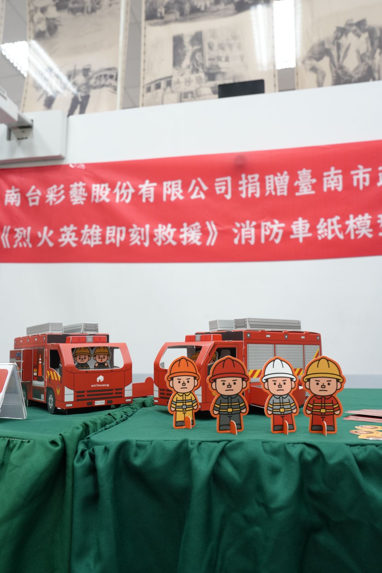 為強化消防安全教育、提升孩童與家庭防災意識,南台彩藝股份有限公司捐贈3000份《烈火英雄即刻救援》消防車紙模型桌遊予臺南市政府消防局,提供作為防災宣導與教育推廣使用。捐贈儀式於消防局防災教育館舉行,由消防局副局長丁春能代表受贈,並致贈感謝狀,感謝企業善盡社會責任。