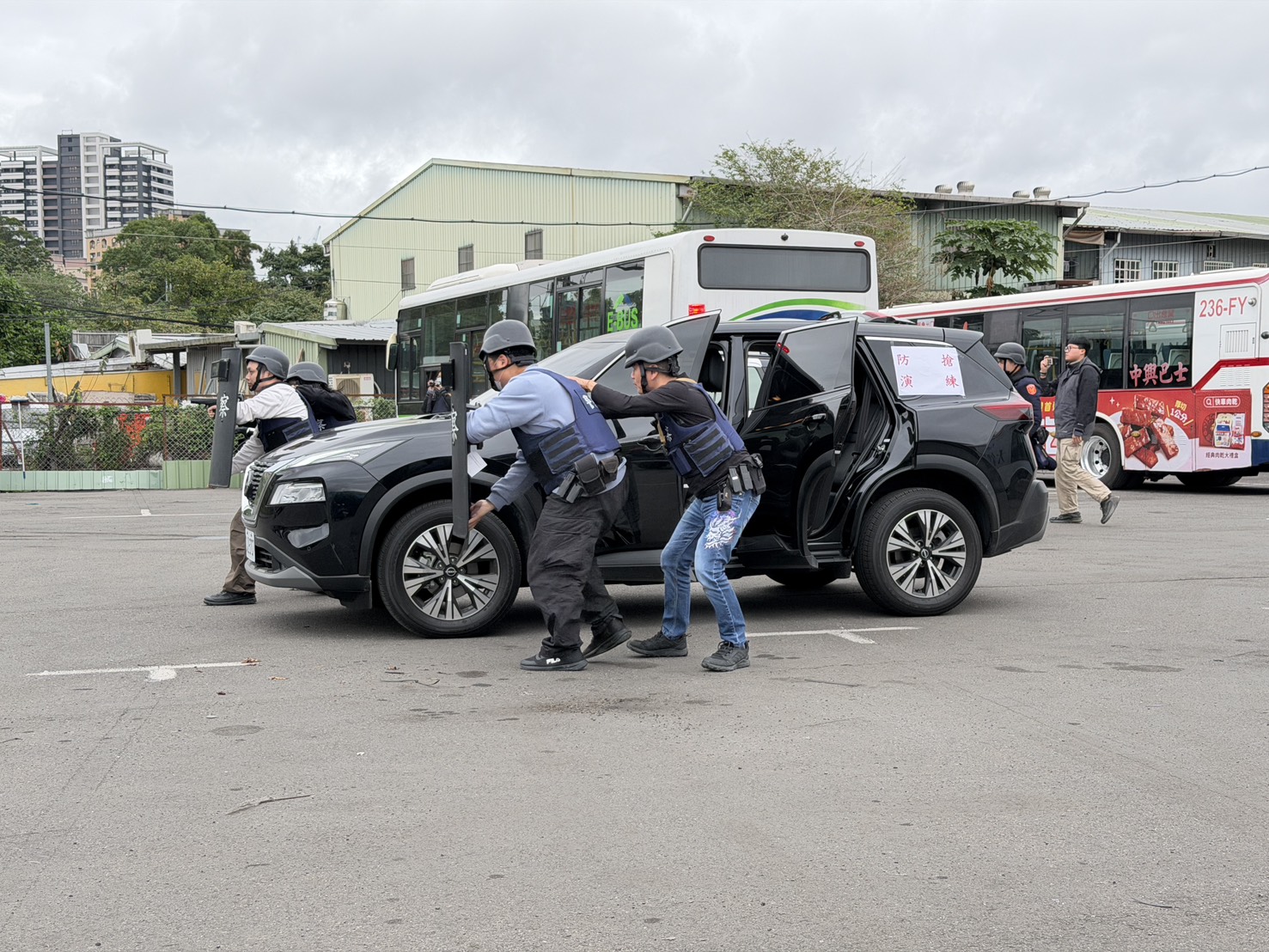 演練過程,歹徒得手後駕車往中和方向逃逸,警車隨即開啟警報器在後追緝,歹徒見狀馬上逃逸並衝撞攔截點,頓時整條街充滿了警笛聲,過程緊張又逼真,引起路上行人側目不已。