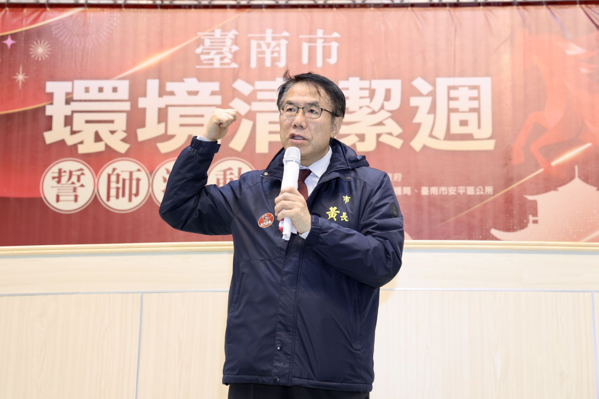 歲末將至,配合農曆年節前家戶大掃除的習慣,環保局將2月7日至15日訂為「台南市環境清潔週」,今(7)日於安平國中舉辦誓師大會,由市長黃偉哲帶領安平區13里、社區環保志義工近300人分頭打掃環境,乾淨迎馬年。市長黃偉哲表示,國家清潔週啟動,象徵新年的腳步近了。感謝長年守護市容的清潔隊員,正因有第一線同仁與志工的辛勞付出,台南才能以最整潔、宜居的面貌迎接返鄉遊子與觀光人潮。