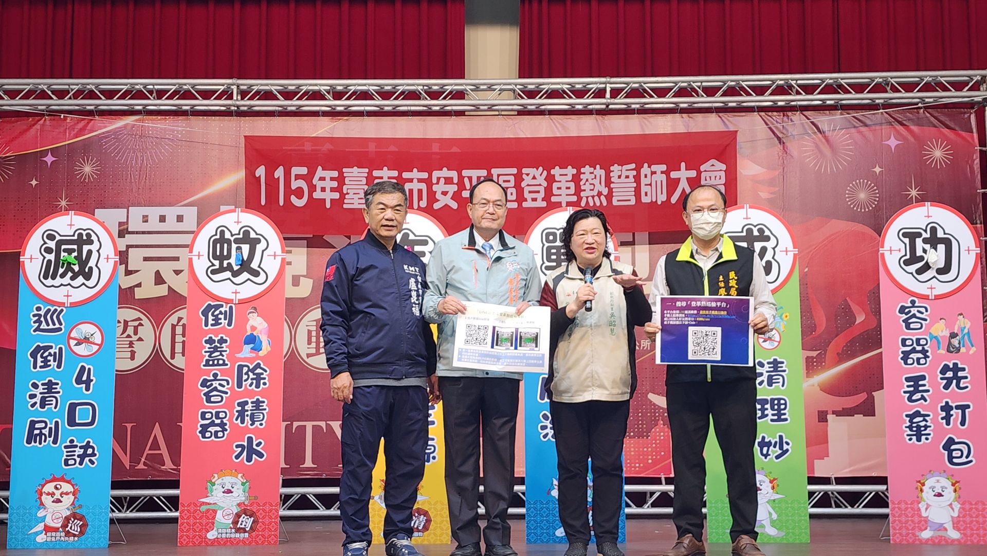 114年度本市發生3例本土登革熱確診個案,由於防範得宜,幸而未往社區擴散。惟鑑於全球氣候異常影響,為防止今(115)年登革熱疫情再次升溫,凝聚民眾抗疫的共識,安平區公所於今(7)日配合國家環境清潔週辦理擴大孳生源清除登革熱防治誓師大會,宣誓安平區齊心防疫,打擊登革熱的決心。