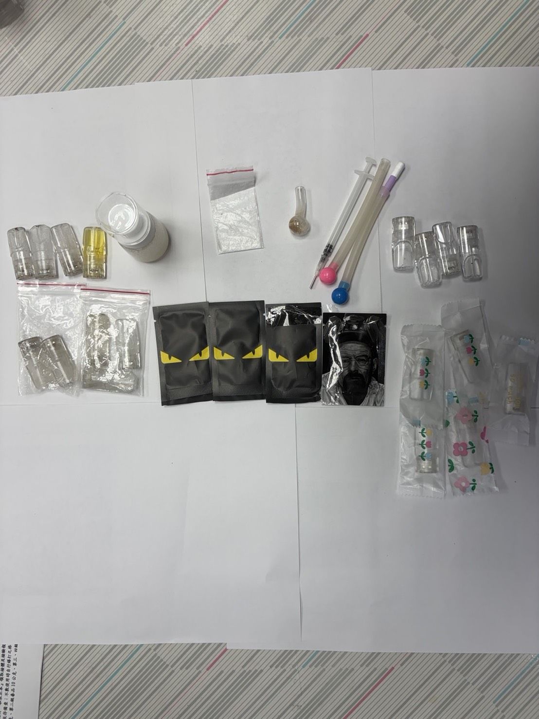 員警隨後在車內查獲喪屍菸彈1顆、殘渣8顆、未使用菸彈9顆、菸油1罐,以及印有美劇《絕命毒師》圖樣的毒品咖啡包4包、安非他命1包與吸食器具。員警將連男帶返派出所接受篩檢呈現大麻、依托咪酯、鴉片類及卡西酮等多項毒品陽性反應,全案警詢後依違反毒品危害防制條例及公共危險罪嫌,移送士林地檢署偵辦。