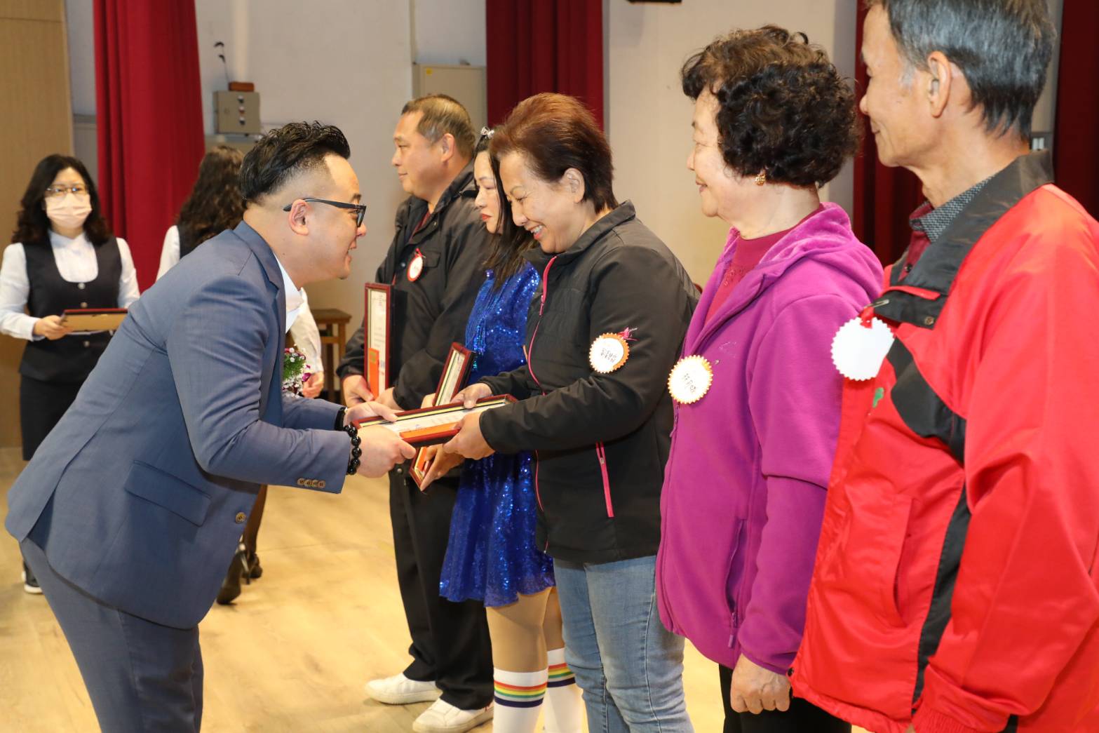 童子瑋頒發獎狀給為農業熱心付出的農民朋友。圖/翻攝