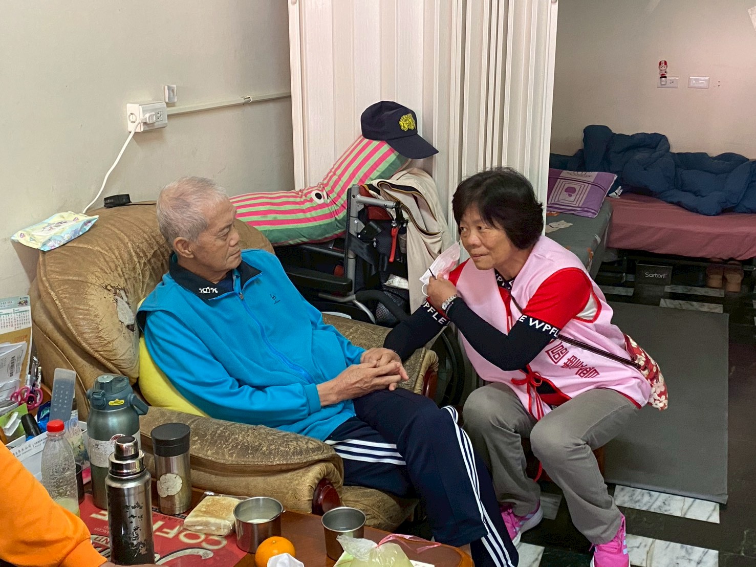 此次訪視由衛生所護理師進行健康狀況評估與用藥諮詢,了解長者日常生活功能、慢性病控制情形及失智症狀變化,同時提供照顧者衛教指導,包括失智症照護技巧、安全防跌建議、營養飲食提醒及情緒支持等,協助家庭建立更安心的照顧環境。