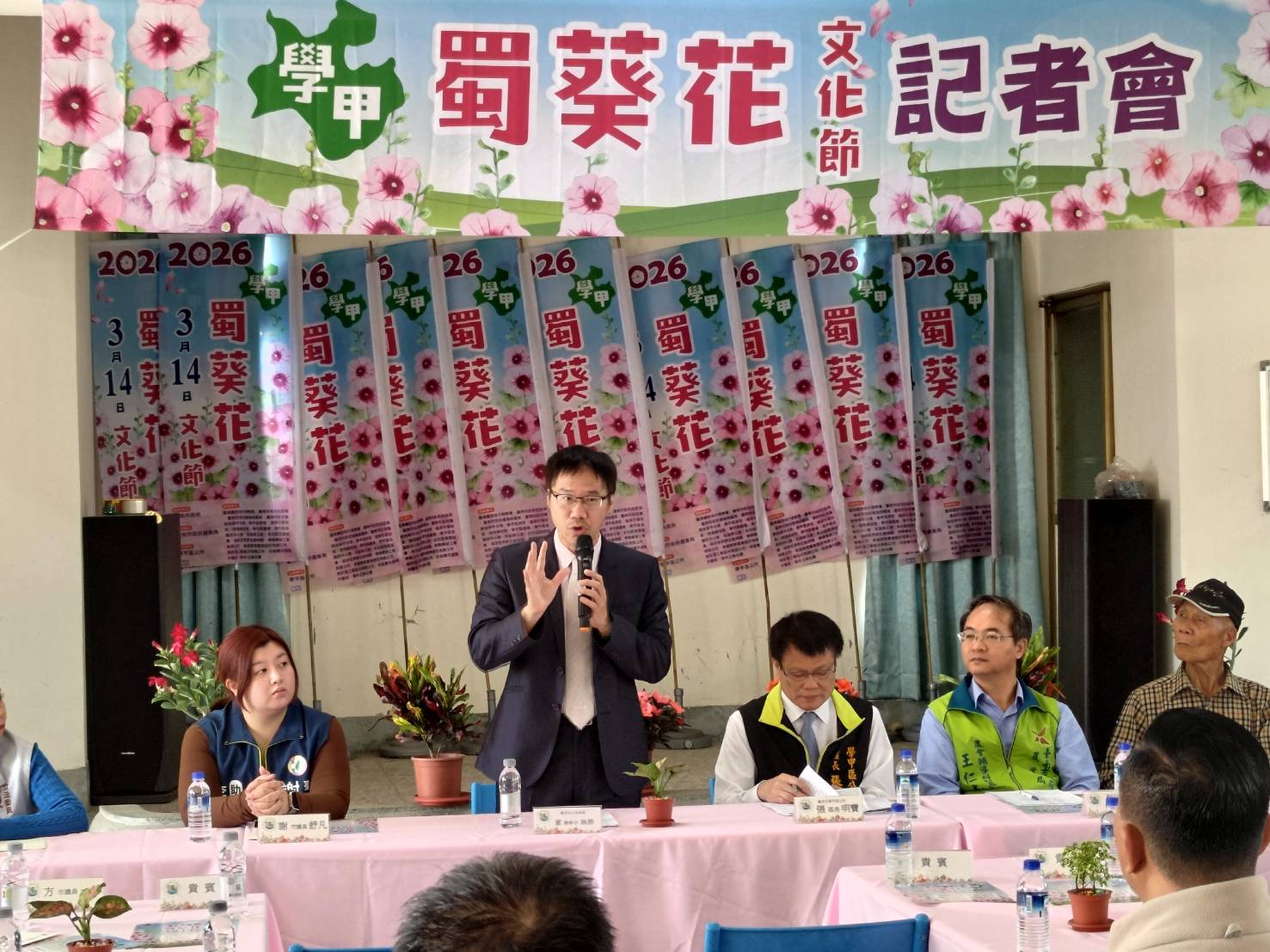 115 年度「學甲蜀葵花文化節」將於3月14日隆重登場,展開一系列精彩豐富的活動,於3月6日在光華社區活動中心舉行記者會,臺南地檢署董詠勝檢察官、陳明慧觀護人、臺南市政府農業局科長王仁志、學甲分局副分局長陳俞成等均出席共襄盛舉。