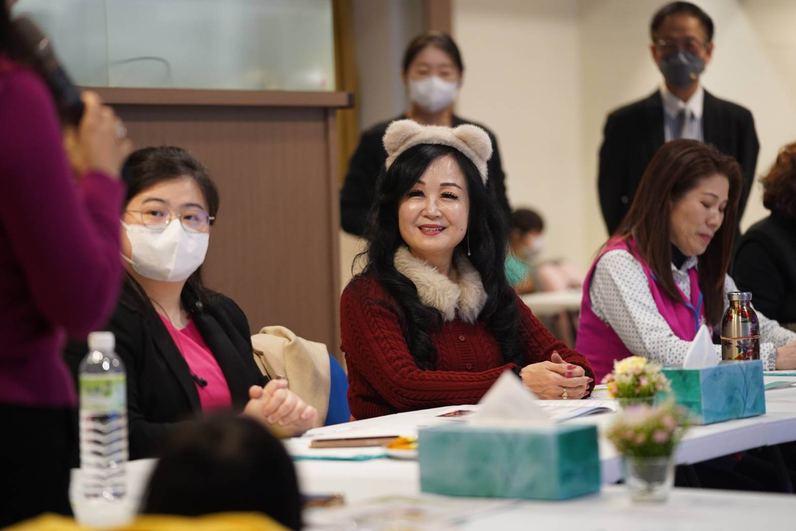 今日應市長夫人號召到場的貴賓陣容龐大,包含市議員謝美英、社會局兒少科長陳資穎、婦幼發展局主秘林燕婷,以及救國團桃園市大溪區團委會戴芳瑀前會長、達清環保企業股份有限公司副總經理章卉庭、成功扶輪社張秋芬、隨緣茶空間黃淑芬、天成醫療集團楊瑞玲、敏盛醫療體系林筠珊等多家企業與公益社團代表,展現出各界對社福工作的高度關注。