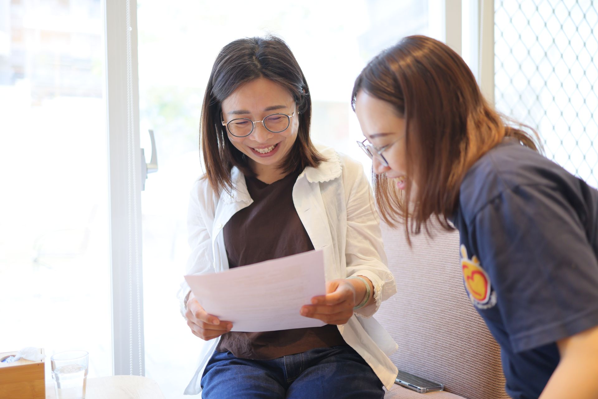 ▲社團法人台灣愛之光公益協會 執行長 顏平芳與協會人員 接受專訪訪談前訪綱審閱 /張峰睿 攝影師 提供