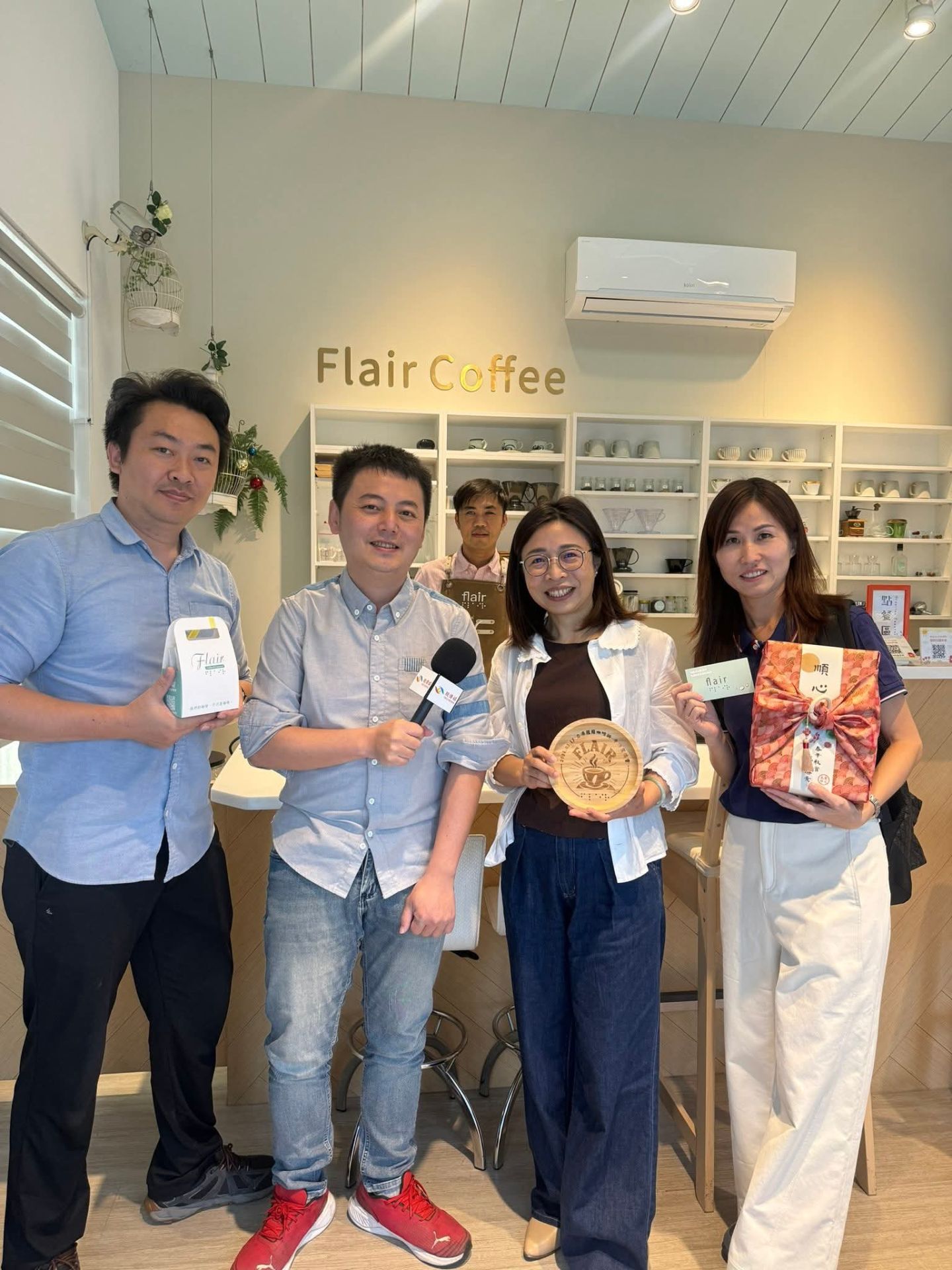 ▲圖左張峰睿 攝影師 左二 覞傳媒社長楊瑞成 右二台灣愛之光公益協會 執行長 顏平芳 圖右覞傳媒記者 茉莉 訪談後一起合影留念 /覞傳媒 記者 茉莉 提供