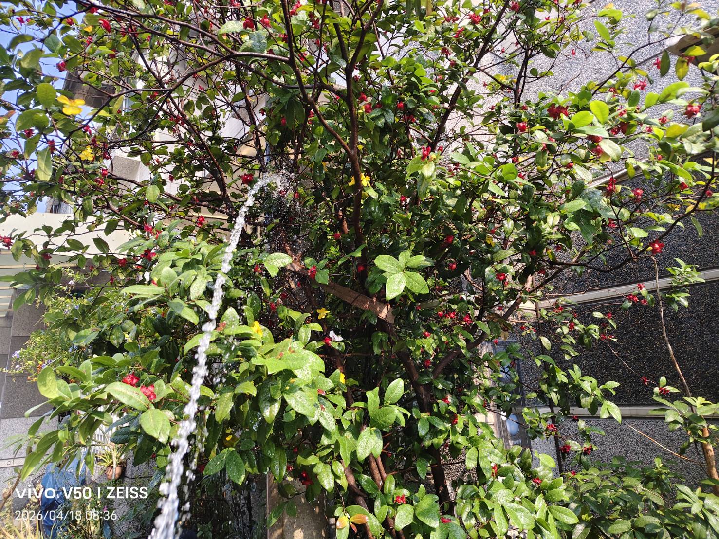 那這家主人澆花木,為何灑樹葉?澆植物不是澆其根?原來主人看過,久不下雨,綠繡眼這種靈巧小鳥,白頭翁,都會在樹葉間穿梭跳躍,利用葉子水珠洗澡。麻雀在乾旱時也會在砂子上「土浴」。憐蛾不點燈,那澆樹灑枝葉,也是一種好心善舉。